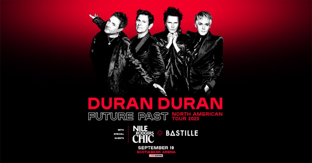 Duran Duran has announced a 26-date North American arena tour for 2023, with both Bastille and Nile Rodgers & CHIC joining them as special guests across the entire run. Produced by Live Nation, THE FUTURE PAST TOUR begins on May 28 in San Jose, CA and will make stops across Seattle, Portland, Salt Lake City, Austin, New Orleans, Dallas, Nashville, Atlanta, and Tampa before concluding the first leg in Florida on June 18. The tour will pick up again on August 24 in Sacramento, CA, with dates in Chicago, Boston, Philadelphia, Washington, D.C, Detroit, and Toronto amongst many more. Dates in NYC and LA will be announced soon.