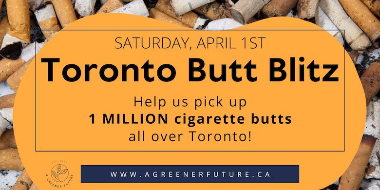 As the snow melts away and all the butts are released from their snowbanks we would love to have you join us for a world record-breaking event! In February of 2022 a cleanup in Paris, France resulted in 855,000 butts being picked up in 3 hours. We can beat that, right? Of course we can! Let’s make Toronto shine and send all those butts to be recycled.