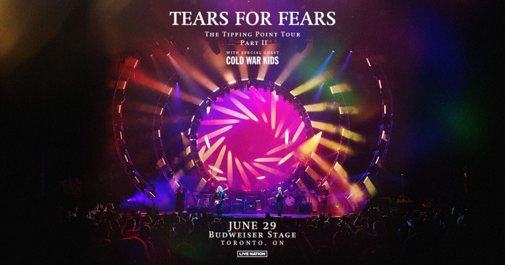 Tears for Fears: The Tipping Point Tour Part II Where Budweiser Stage, 909 Lake Shore Blvd W, Toronto, On, M6K 3L3, Canada Map When Jun 29/23 05:00 PM - Jun 29/23 11:59 PM Age 12+ year Website https://www.ticketmaster.ca/event/10005E7DF9563B6C TEARS FOR FEARS The Tipping Point Tour Part II With Special Guest: Cold War Kids Thursday June 29th at Budweiser Stage