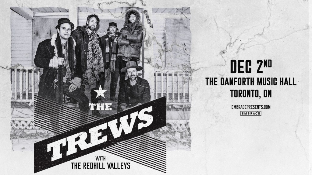 The Trews: Annual Holiday Show Where Danforth Music Hall, Toronto Map When Dec 02/23 07:00 PM - Dec 02/23 11:00 PM Age All Price Starting at $$39.50 - $55.00 (plus fees) Buy Tickets Website https://www.ticketmaster.ca/event/10005F2AF20154EE Embrace Presents THE TREWS: Annual Holiday Show December 2, 2023 @ The Danforth Music Hall doors: 7pm | 19+ eve nt