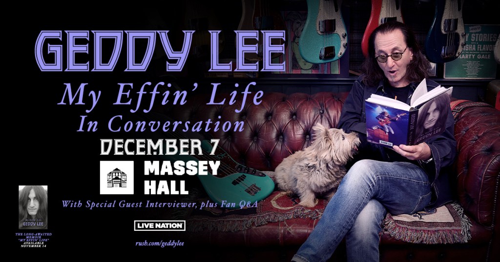 Geddy Lee: My Effin’ Life In Conversation Where Massey Hall, 178 Victoria St, Toronto, ON Map When Dec 07/23 05:00 PM - Dec 07/23 12:00 AM Age All Website https://www.ticketmaster.ca/event/10005F3CD17250EC Geddy Lee: My Effin’ Life In Conversation December 7, 2023 at Massey Hall