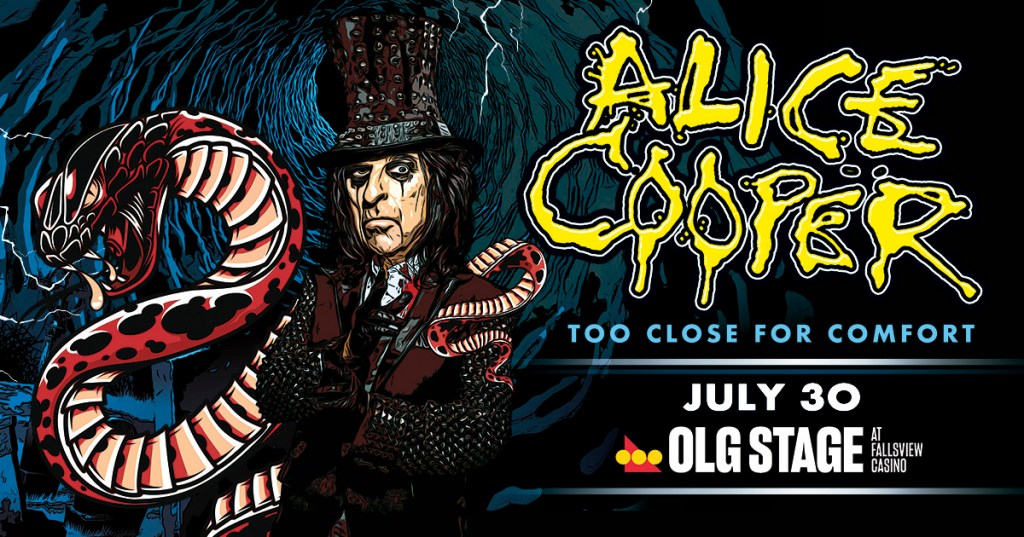 Alice Cooper pioneered a grandly theatrical brand of hard rock that was designed to shock.  Drawing equally from horror movies, vaudeville, and garage rock, the group created a stage show that featured electric chairs, guillotines, fake blood and boa constrictors. He continues to tour regularly, performing shows worldwide with the dark and horror-themed theatrics that he’s best known for.