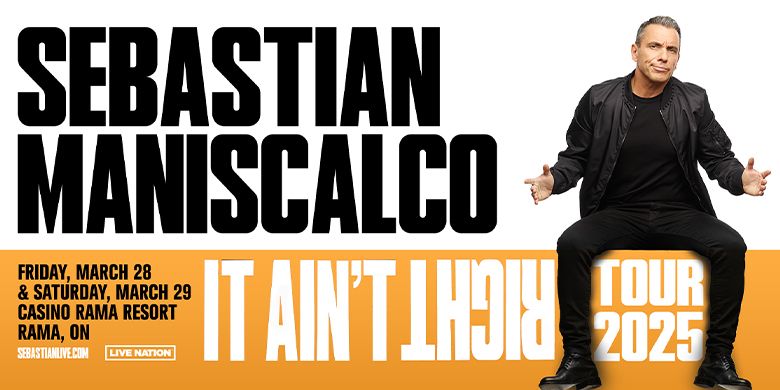 Sebastian Maniscalco Where Casino Rama Resort, Rama, ON Map When Mar 28/25 05:00 PM - Mar 29/25 11:00 PM Age All Website https://www.casinorama.com/entertainment/ Sebastian Maniscalco It Ain’t Right Tour 2025 Friday, March 28th & Saturday March 29th Location: Casino Rama Resort, ON