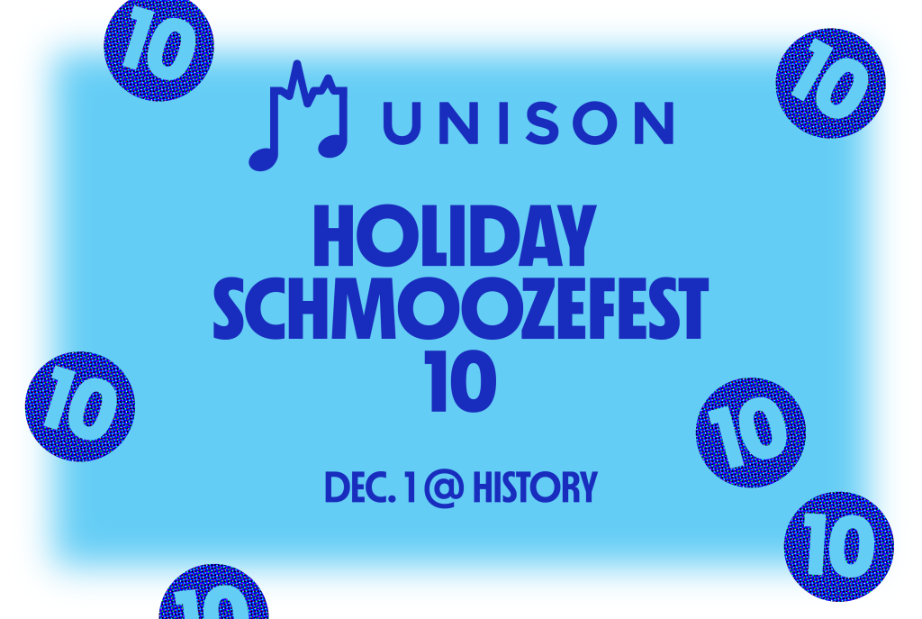 Join us for the biggest edition yet of the Canadian music industry’s favourite holiday tradition — the Unison Holiday Schmoozefest, happening December 1 at HISTORY!