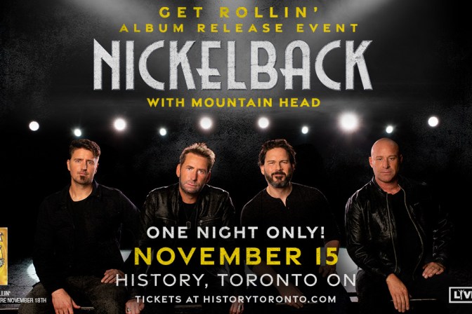 History, Toronto Q107 is excited to welcome Nickelback: Get Rollin’ Album Release Event November 15 at HISTORY. Tickets onsale 10am October 26 at Ticketmaster.ca 19+ Only event.