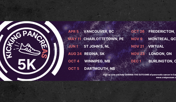 London 7200 Canadians will have their life changed forever with a pancreatic cancer diagnosis. The average time from diagnosis to death is only 16-20 weeks. Register today for Kicking PancreAS™ 5K taking place on Sunday December 1st at 5:00pm at the Burlington Waterfront. Help Craig’s Cause Pancreatic Cancer Society “Change the Outcome” for those diagnosed, by […]